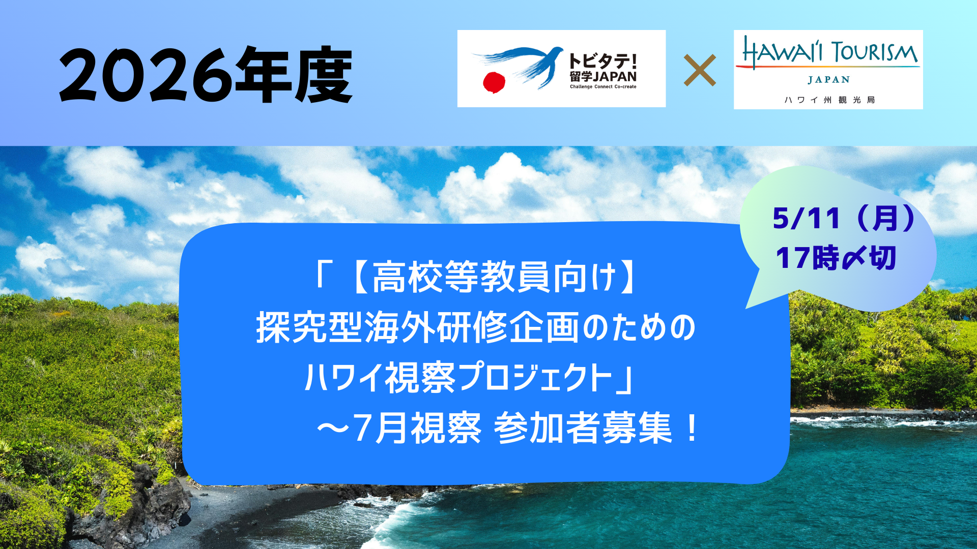 2026年度「【高校等教員向け】探究型海外研修企画のためのハワイ視察プロジェクト」参加者募集