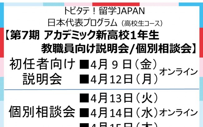 【高校生コース】アカデミック(テイクオフ)新高校1年生第7期募集に関する教職員向け説明会/個別相談会(オンライン) を読む