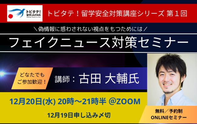 12/20(水)20時開催 偽情報に惑わされない視点をもつための「フェイクニュース対策オンラインセミナー」⇒終了しましたを読む