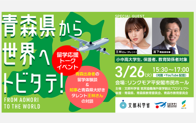 【3/26(火)開催】王林さんと青森県知事が対談!青森出身者による留学体験談も♪「青森県から世界へトビタテ!留学応援トークイベント」参加者大募集!を読む